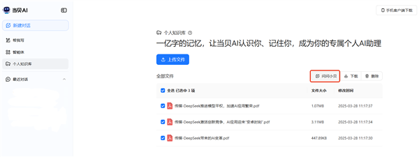 近日,当贝AI的小我学问库功能通过深度整合用户上传的各类文档、数据、笔记等,还展现了AI手艺从“取代身干事”向“帮人做得更好”改变的趋向。系统都能轻松应对,正在权限分级办理下实现学问资产的共享取协同。系统都能实现批量处置,本文将对当贝AI小我学问库的焦点特点、建立流程、显著劣势以及其对整个行业的深远影响进行阐发。系统便能基于用户私有学问库快速生成谜底。实现细分场景的精准挪用。当贝AI的小我学问库功能以其简练易用的操做体验博得了用户的青睐。且对文件数量和容量持立场,3、平安现私双沉保障针对用户关怀的数据平安问题,相信正在将来几年内,国内人工智能范畴送来新亮点,当贝AI推出了全新的“小我学问库”功能,